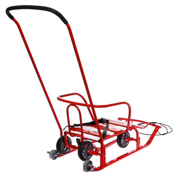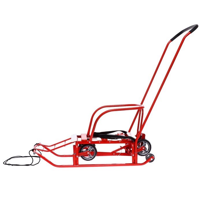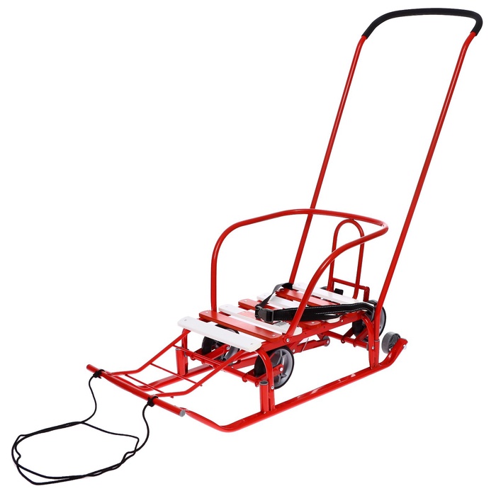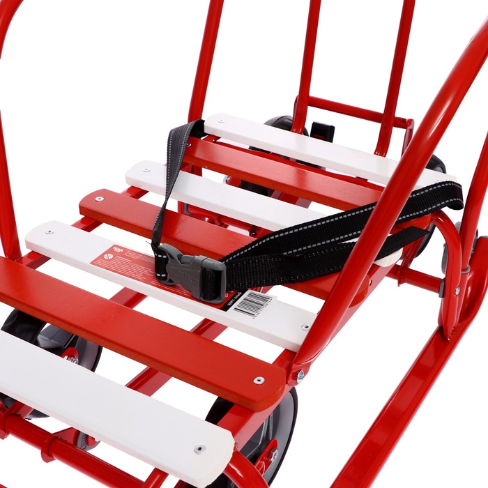 - Санки оснащены ремнём, который удержит ребёнка. Спинка зафиксирована в положении сидя.