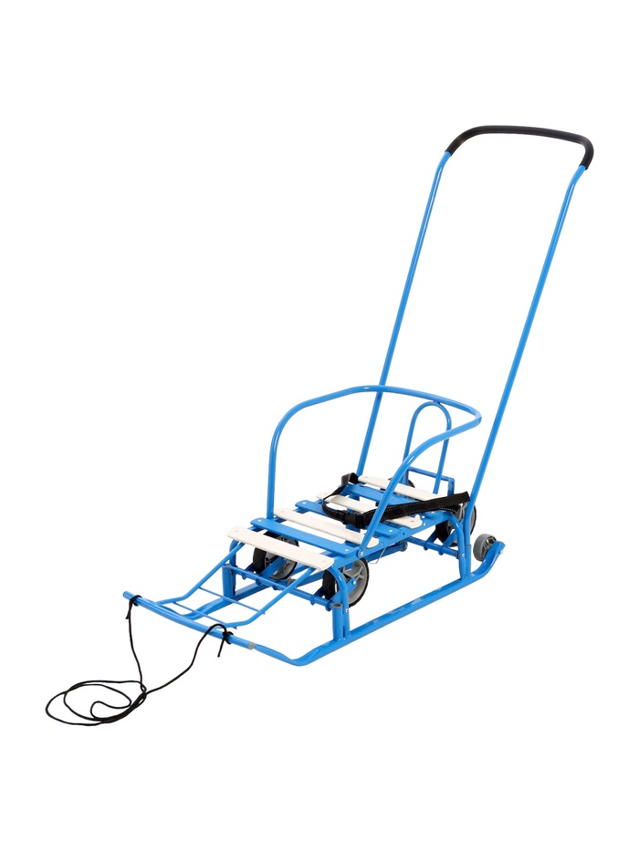 - Санки оснащены ремнём, который удержит ребёнка. Спинка зафиксирована в положении сидя.