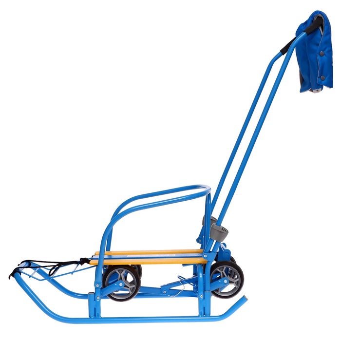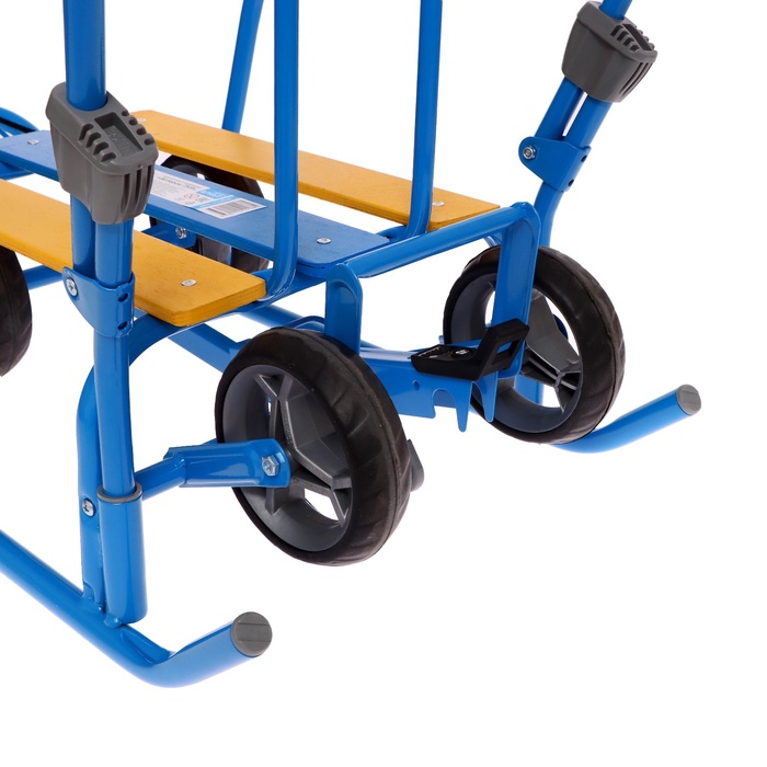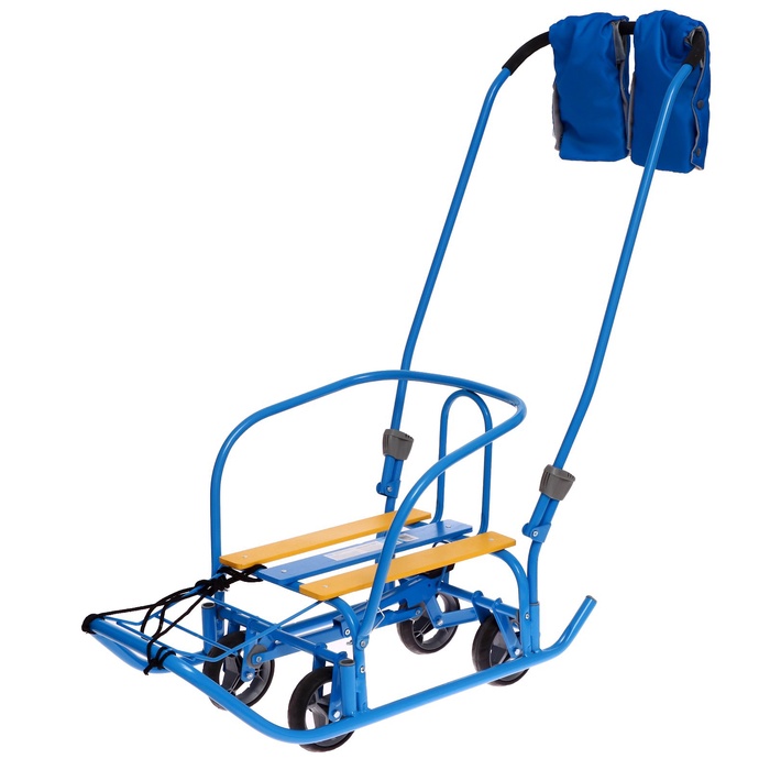 - Лёгкий уход: Водоотталкивающая ткань сиденья и пластик, устойчивый к царапинам. Голубой цвет скрывает мелкие загрязнения — санки выглядят аккуратно даже после активного использования.