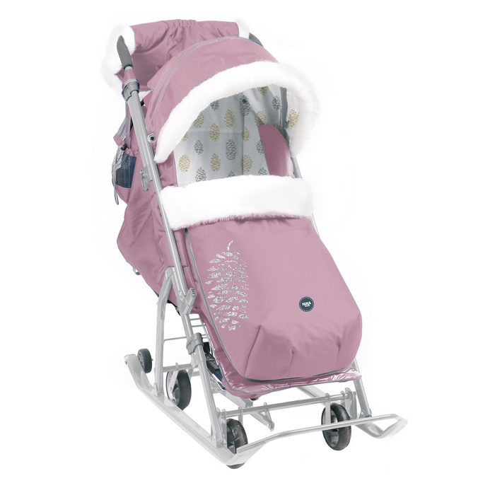 Санки-коляска с утеплённым чехлом и муфтой создана для долгих зимних прогулок. Ребёнок остаётся в тепле, а родители могут легко управлять санками благодаря эргономичной ручке. Привлекательный пыльно-розовый цвет с принтом выделит ваши сани среди других — стильно и практично!