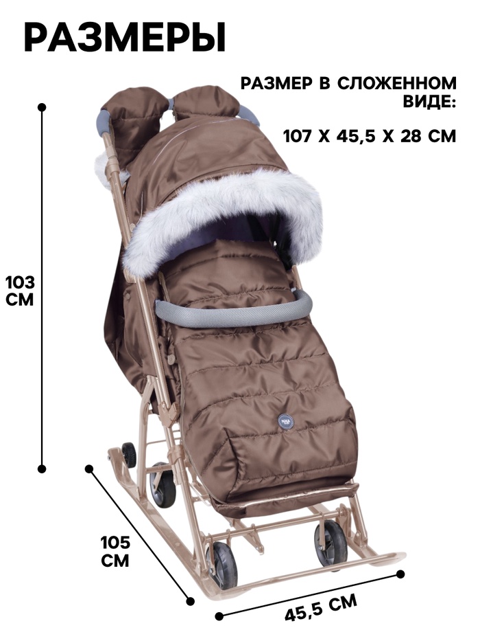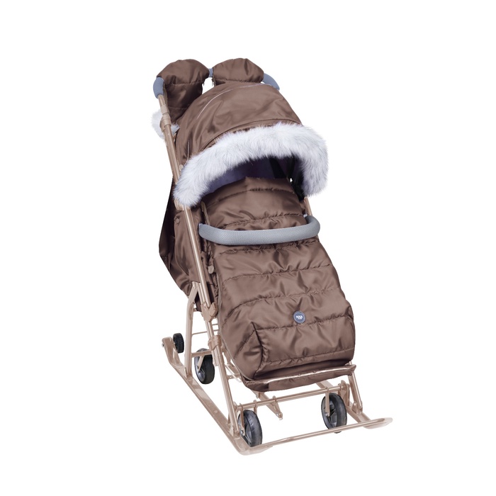 Санки-коляска с утеплённым чехлом и рукавичками создана для долгих зимних прогулок. Ребёнок остаётся в тепле, а родители могут легко управлять санками благодаря эргономичной ручке. Привлекательный бежевый цвет выделит ваши сани среди других — стильно и практично!