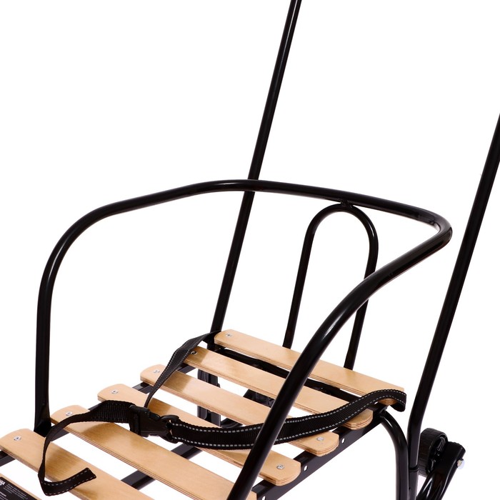 Такие санки станут хорошим вариантом для семей, которые гуляют зимой в городе и ценят простоту ухода. Чёрный цвет легко сочетать с любыми комбинезонами и не требует частой чистки.