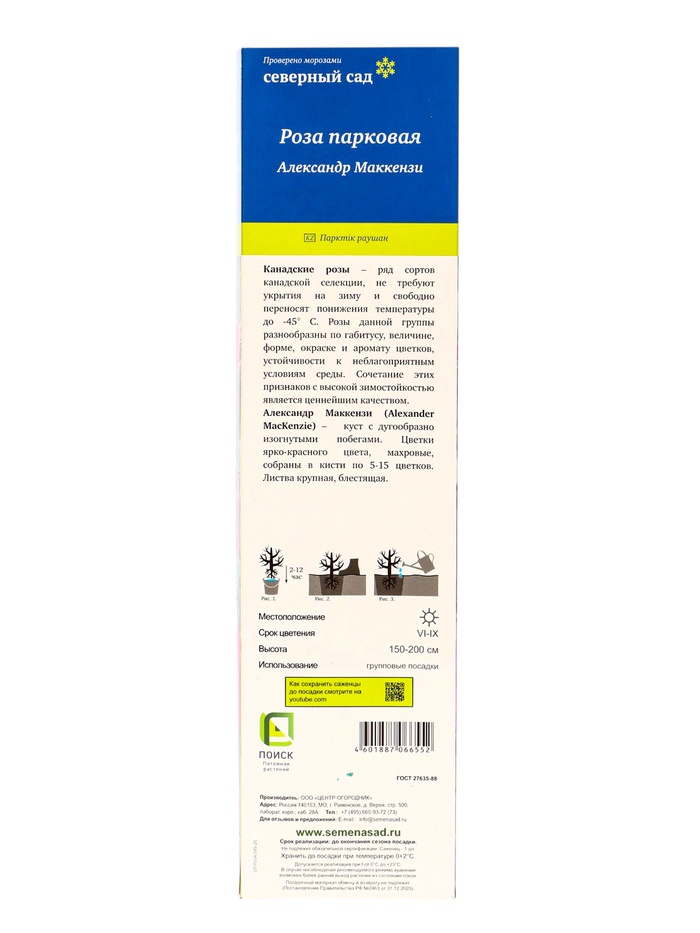 Канадская парковая роза Александр Маккензи — выносливый и неприхотливый сорт с насыщенными красными цветами. Саженец хорошо приживается и быстро набирает силу, формируя плотный куст. Прекрасный выбор для тех, кто ищет стабильное цветение без лишнего ухода. Идеален для начинающих и практичных садоводов.