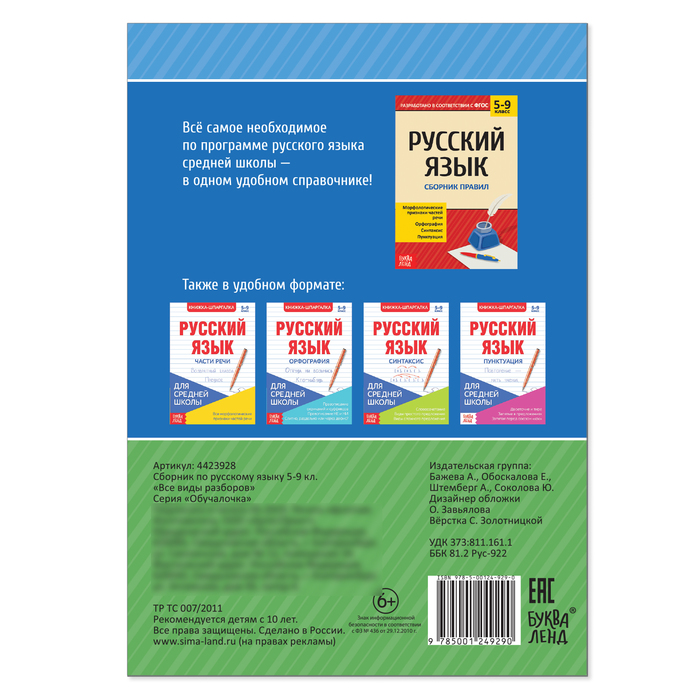 Сборник по русскому языку содержит основные виды разборов, которые используются в школьной программе 5–9 классов.
