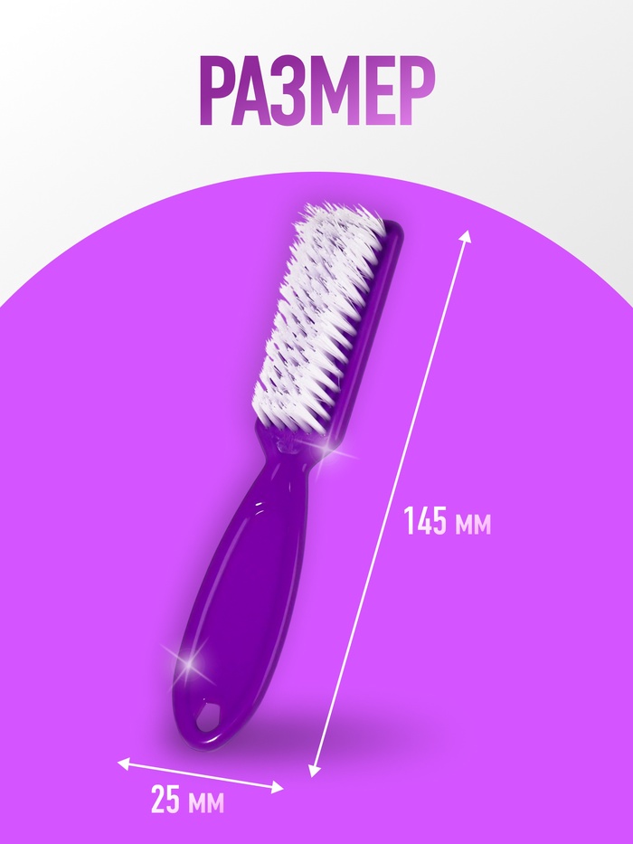 - Эффективная чистка: мягкие нейлоновые щетинки бережно удаляют загрязнения и опил с ногтей.