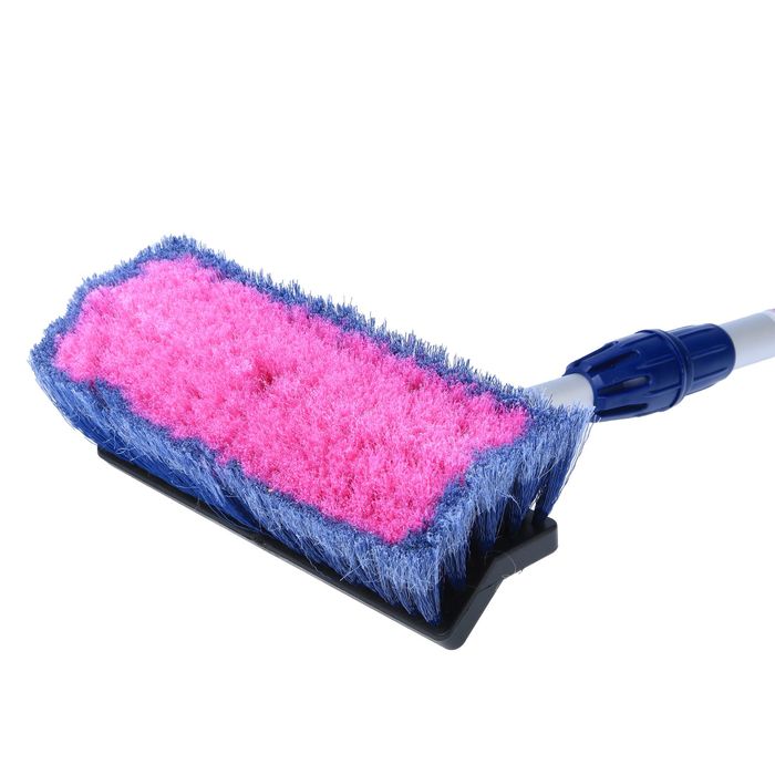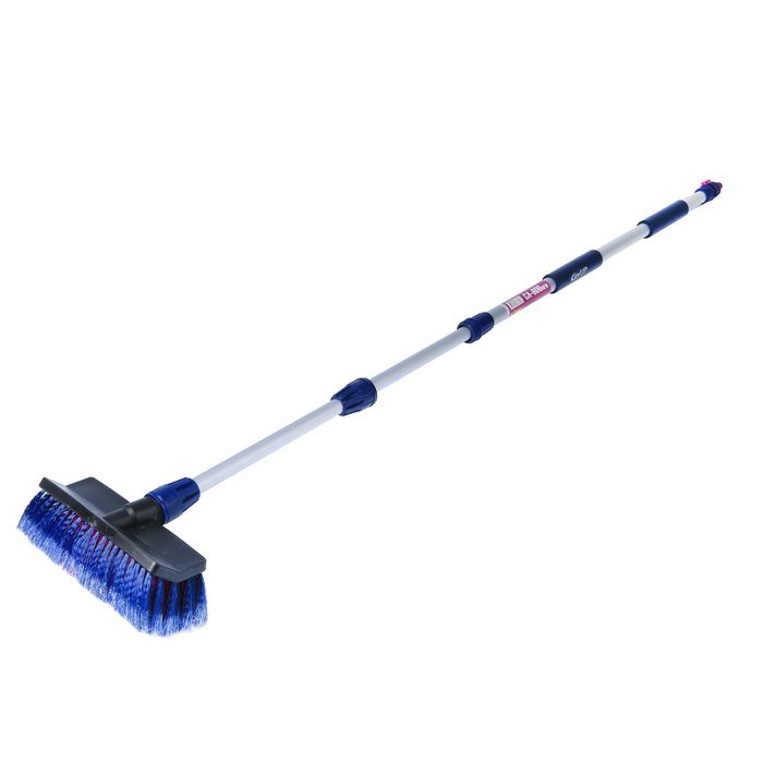 Упругая распущенная щетина впитывает и удерживает большое количество коды. Такое свойство значительно снижает время мойки и повышает её эффективность. При этом изделие не царапает лакокрасочное покрытие автомобиля. На ручке аксессуара предусмотрено отверстие для подключения к шлангу и кран регулирования напора воды.