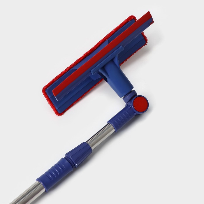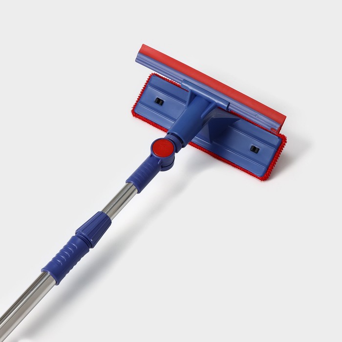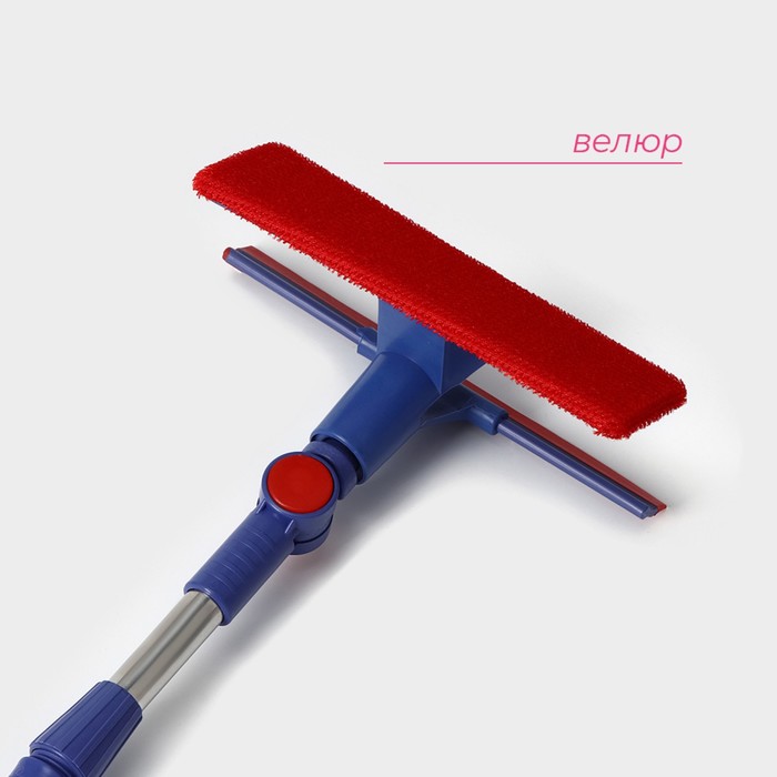Щётка для окон Доляна, фиксатор, стальная телескопическая ручка, длина 55(83) см, водосгон силикон 18 см, насадка велюр 18×8 см