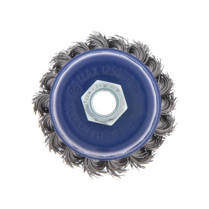 Металлическая кручёная щётка чашечного типа ТУНДРА предназначена для грубой зачистки металлических поверхностей от ржавчины и грязи, удаления неровностей и сглаживания сварных швов. Применяется совместно с угловой шлифовальной машиной, тип крепления - М14.