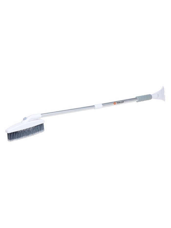 Флагманская модель щётки для уборки снега и льда оснащена телескопической ручкой с MAX длиной 123 см. Щётка имеет поворотную голову с пятирядной щетиной, которая позволяет с двойным удобством убрать снег с автомобиля. Распушенная щетину, которая позволяет проводить очистку снега с лакокрасочной поверхности автомобиля максимально деликатно. Рукоятка сделана из алюминия, специальную эргономичную вставки - из морозоустойчивого поролона, которые делают эксплуатацию изделия удобной даже при низком температурном режиме. В состав рукоятки входит прочный пластик, который не подвержен перепадам температур. Для особо сложных загрязнений и льда предусмотрен скребок на другом конце щётки.