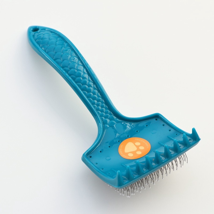 Пуходерка выполненная из нержавеющей стали, предназначена для ухода за шерстью кошек и собак. Пуходерка имеет частую металлическую щетину, что помогает удалять старую шерсть и стимулировать рост новой. Пуходерка служит для полного разъединения всех шерстинок. Она вычесывает отмершие волосы, вытягивая шерсть на полную длину. Удобная прорезиненная ручка не позволит выскользнуть пуходерке из рук даже во влажных условиях использования.