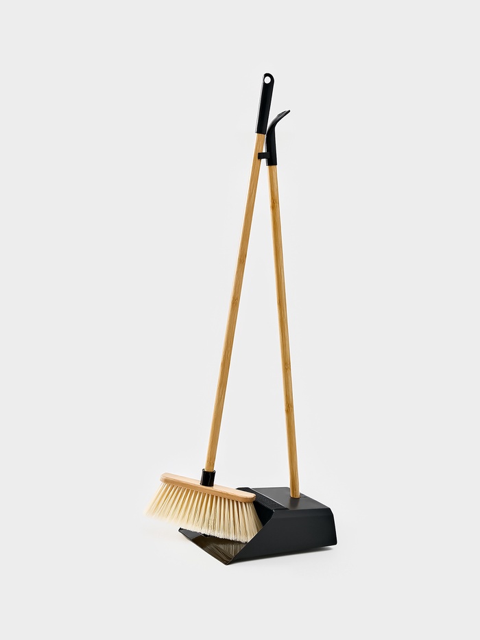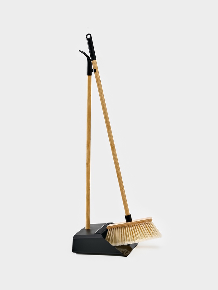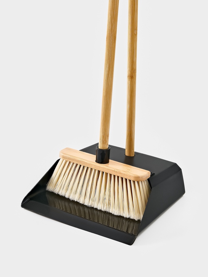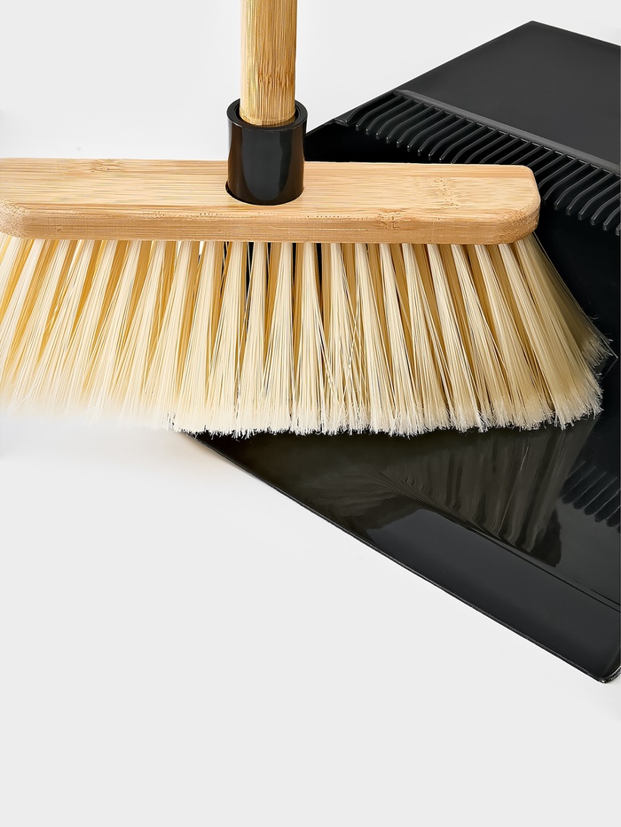 Щетка с совком "Meli" бамбуковый держатель, цвет черный 26х24х98 см