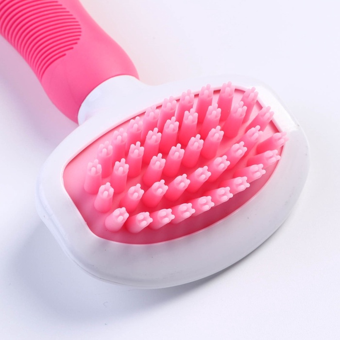 Щетка предназначена для тщательного ухода за шерстью кошек и собак. Она легко удаляет частички пыли и грязи с шерсти животного, не повреждая поверхность кожи и не травмируя структуру шерсти.