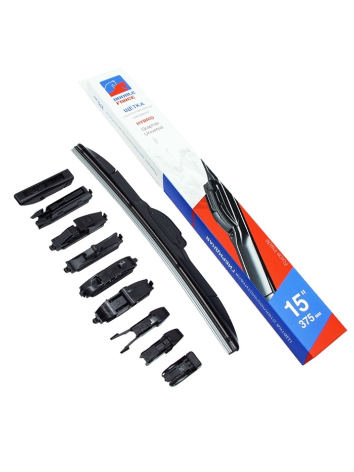 Щётка стеклоочистителя гибридная Double Force, 375 мм (15″) - это современный дворник, сочетающий в себе преимущества каркасной и бескаркасной технологий. Он обеспечивает равномерное прижатие к стеклу и стабильную работу при любых скоростях, сохраняя при этом аэродинамичность и низкий уровень шума.