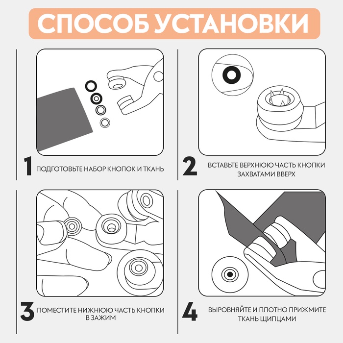 Инструмент для кнопок не только облегчает вашу работу, но и делает её более профессиональной и аккуратной. Благодаря высококачественным материалам и удобству в использовании, вам больше не придётся тратить время и силы на закрепление фурнитуры вручную. Это инновационное решение для любого, кто ищет надёжность и простоту в одном комплекте!