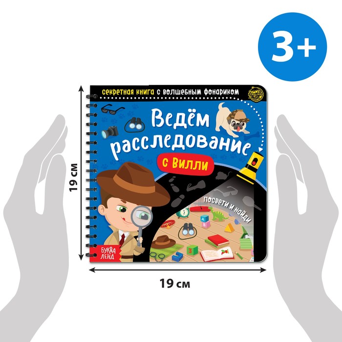 Секретная книга с волшебным фонариком «Ведём расследование с Вилли» привлекает внимание ребёнка своей необычной задумкой.