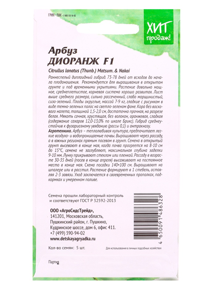 Семена Арбуз «Диоранж» F1, 5 шт. «АгроСидсТрейд»