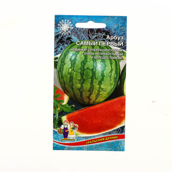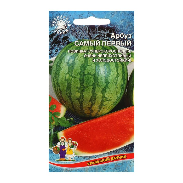 Суперскороспелый, очень неприхотливый и холодостойкий сорт, с дружной отдачей урожая. Плоды округлые, гладкие, массой 2,5-4кг. Мякоть ярко-красная, очень сахаристая, нежная, с ярко выраженным арбузным ароматом, отличных вкусовых качеств, с небольшими чёрными семенами.
