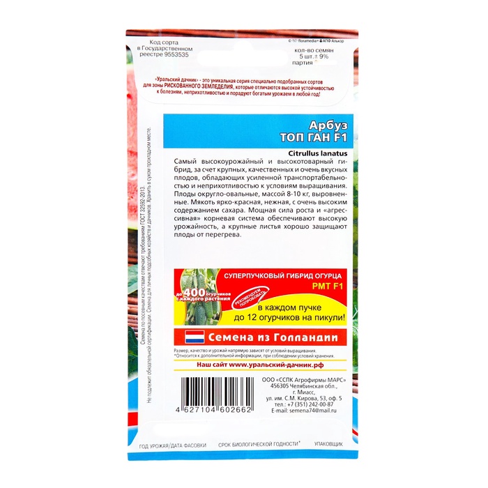 Самый высокоурожайный и высокотоварный гибрид, за счет крупных, качественных и очень вкусных плодов, обладающих усиленной транспортабельностью и неприхотливостью к условиям выращивания. Плоды округло-овальные, массой 8-10 кг, выровненные. Мякоть ярко-красная, нежная, с очень высоким содержанием сахара. Мощная сила роста и «агрессивная» корневая система обеспечивают высокую урожайность, а крупные листья хорошо защищают плоды от перегрева.