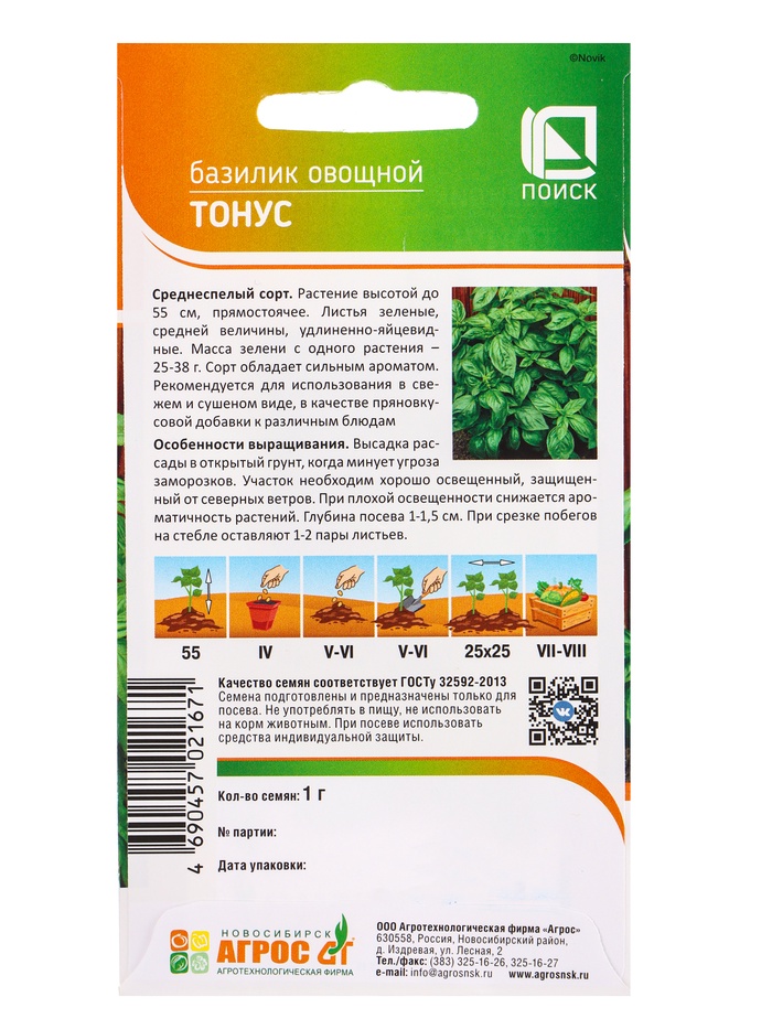 Семена Базилик "Тонус" 1 г