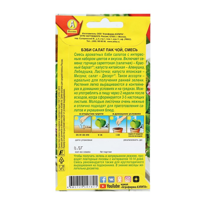 Такое ассорти – идеально для получения ранней зелени. Растения легко выращиваются в контейнерах в домашних условиях и на грядках. Можно употреблять в пищу через 2 недели после всходов, когда сформируется 3-5 настоящих листьев. Молодые листочки очень нежные и отлично подходят для приготовления салатов и украшения блюд.
