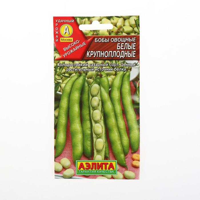 Семена овощных бобов «Белые» — среднеспелый холодостойкий сорт. От всходов до полного созревания семян проходит от 90 до 110 дней, до потребительской спелости молодых бобов — 40 или 50 дней.