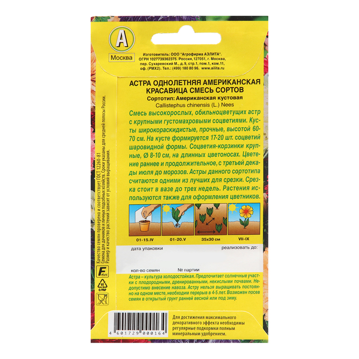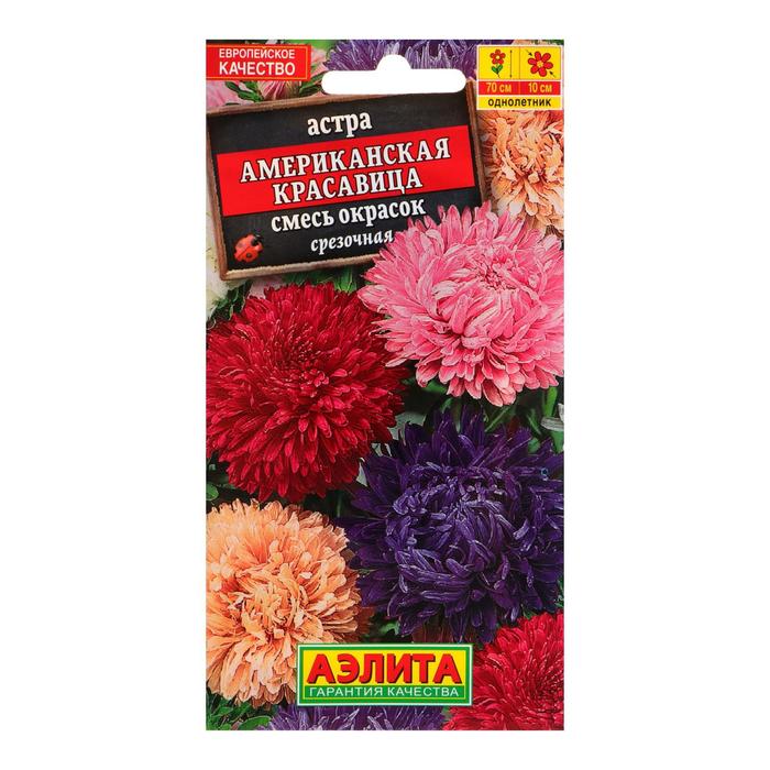 «Американская красавица» — смесь высокорослых, обильно цветущих астр с крупными густомахровыми соцветиями. Растения отличаются ранним продолжительным цветением. Цветы используются для оформления цветников, подходят для срезки.
