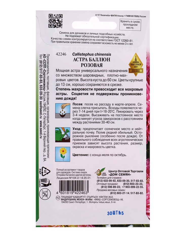 Семена цветов Астра помпон. Черника со сливками 100 шт