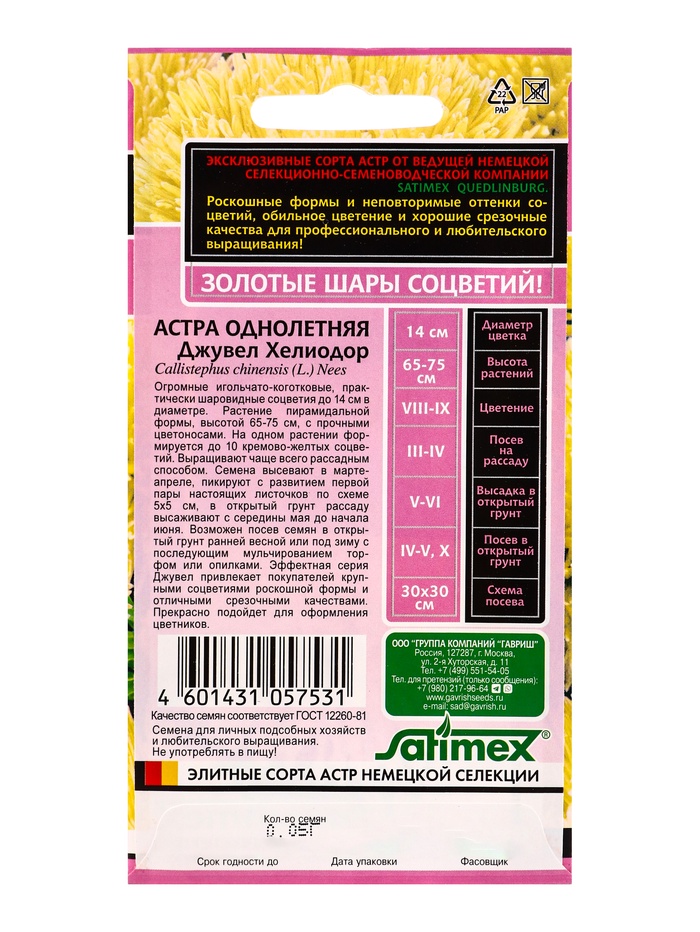 Семена цветов Астра Джувел Хелиодор, однолетняя 0.05 г серия Эксклюзив