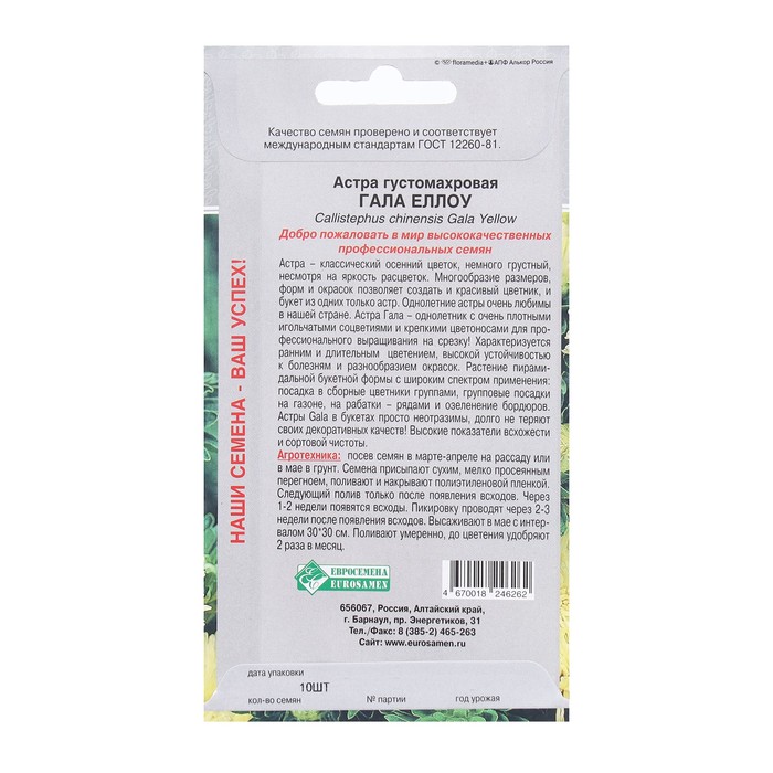 Астра Гала - однолетник с очень плотными игольчатыми соцветиями и крепкими цветоносами для профессионального выращивания на срезку. Характеризуется ранним и длительным цветением, высокой устойчивостью к болезням и разнообразием окрасок. Растение пирамидальной букетной формы с широким спектром применения: посадка в сборные цветники группами, групповые посадки на газоне, на рабатки – рядами и озеленение бордюров. Астры Gala в букетах просто неотразимы, долго не теряют своих декоративных качеств. Высокие показатели всхожести и сортовой чистоты.