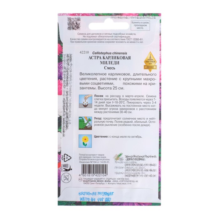 Великолепное карликовое, длительного цветения, растение с крупными махровыми соцветиями, похожими на хризантемы. Смесь колеров. Высота 25 см. Посев рассадой, когда минует угроза заморозков. Расстояние между растениями 15-20 см. Возможен посев в грунт в мае. Посев на рассаду в марте-апреле. Семена слегка присыпать. Всходы появляются через 7-14 дней при температуре 10-15С. Пикировка через 3-4 недели. Предпочитает солнечное место и нейтральную почву. Полив редкий, обильный. осторожное рыхление. Цветение с конца июля по октябрь.