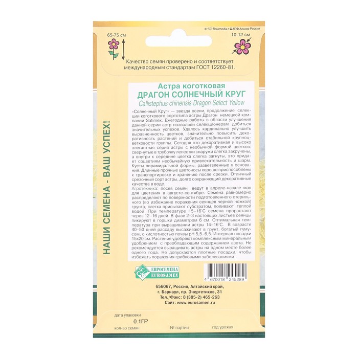 В фазе 2-3 настоящих листьев сеянцы пикируют в горшки диаметром 6 см. Оптимальная температура при выращивании астры 14-16°С.