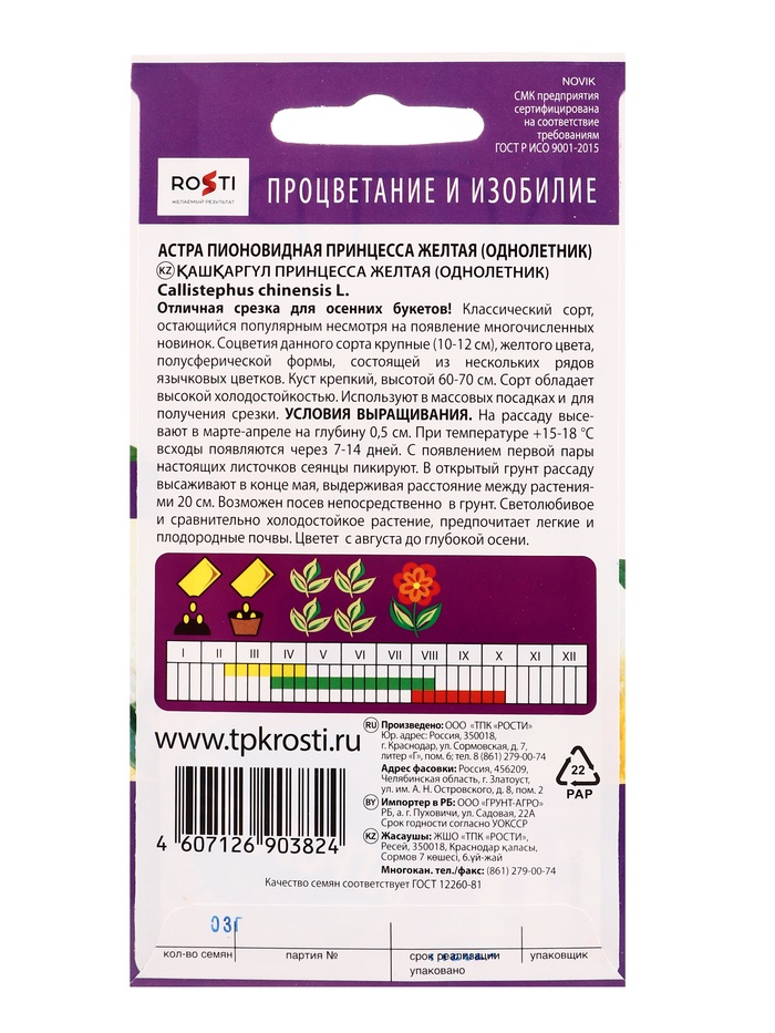 Семена цветов «Астра Принцесса», жёлтая, однолетник, 0,3 г — семена растения раскидистой формы, высотой до 75 см. Соцветия округло-плоские, с желтоватой сердцевиной, диаметром 8–10 см. Оригинальные лепестки скручены по длине в прелестные трубочки, окрашенные как языковые лепестки.