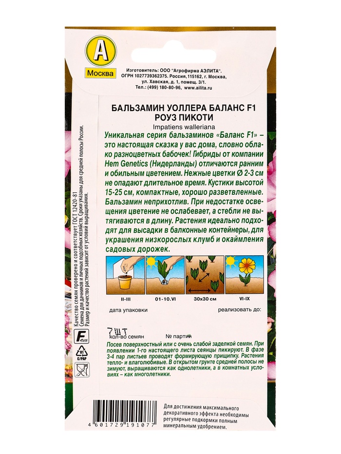 Семена цветов Бальзамин Баланс F1 роуз пикоти Золотая серия, Ц/П,7 шт.