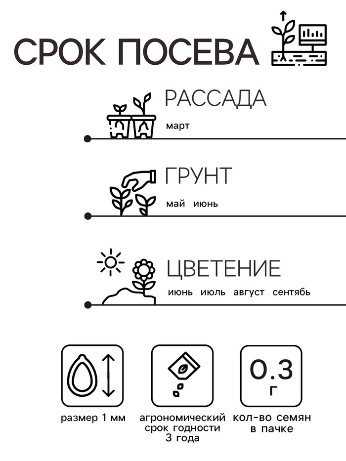 Выращивают рассадным способом. Посев семян проводят в первой половине апреля. Всходы появляются через 4-8 дней после посева, сеянцы пикируют в фазе одного-двух настоящих листьев. Рассаду высаживают в конце мая-начале июня. Возможен посев в открытый грунт в мае на глубину 1 см. Растениям необходимы регулярные поливы, прополки, рыхления и подкормки.