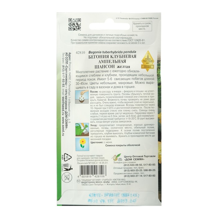 Превосходная клубневая ампельная бегония с махровыми и полумахровыми цветками. У растения обычно 5-8 основных побегов, на которых в пазухе каждого листа расположены длинные цветоносы с правильными камелиевидными цветками диаметром 6-8 см. Длина свисающих побегов 30-45 см. Цветение обильное и продолжительное, Ослепительная радуга её цветов украсит Ваши подвесные корзины и балконные ящики.