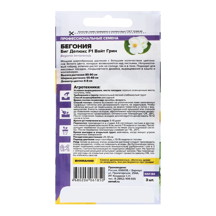Семена белой бегонии отличаются стабильным качеством и хорошей всхожестью, поэтому этот цветок станет настоящей находкой для тех, кто стремится создать уют и красоту на своем балконе или участке.
