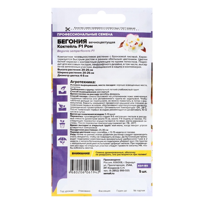 Бегония «Коктейль F1 Ром» — это изысканное растение для вашего балкона или сада. Белые цветы, словно жемчужные капли света, добавят в ваше пространство утонченную элегантность и создадут особую атмосферу.