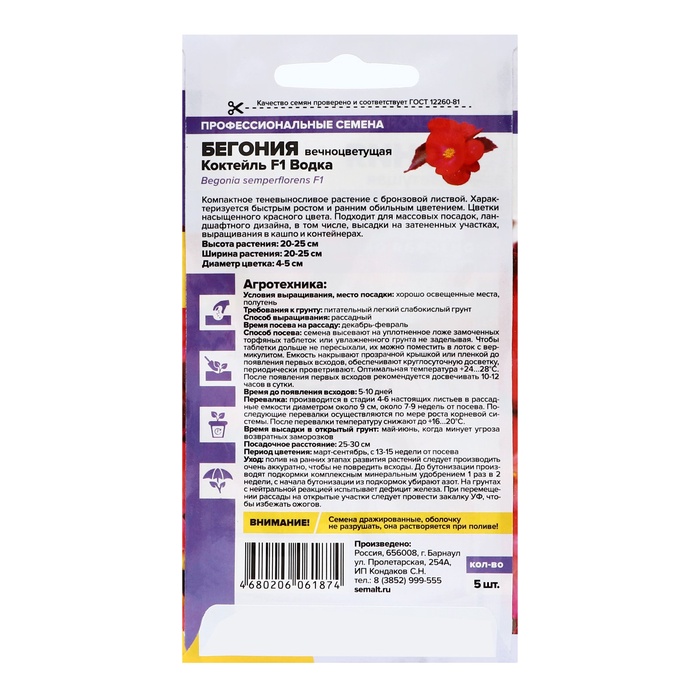 Семена красной бегонии из коллекции «Цветочный коктейль» — это идеальный выбор для любителей красочных и долгоцветущих растений. Бегония станет настоящим украшением вашего балкона и подарит массу приятных впечатлений.