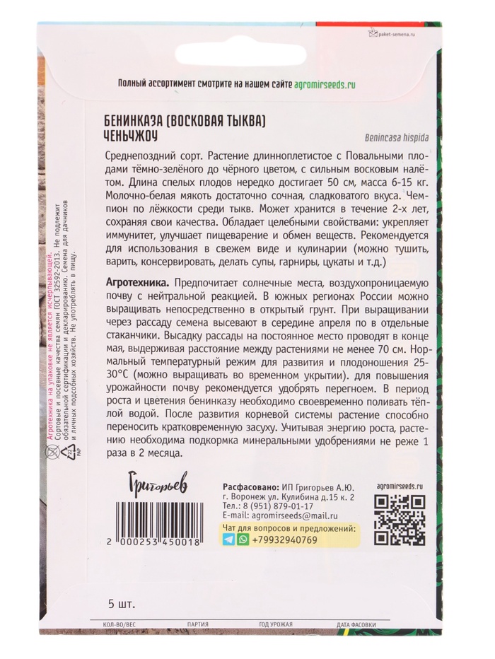 Семена цветов Бенинказа Ченьчжоу (Восковая Тыква) 5 шт. / НОВИНКА 12.29 г.