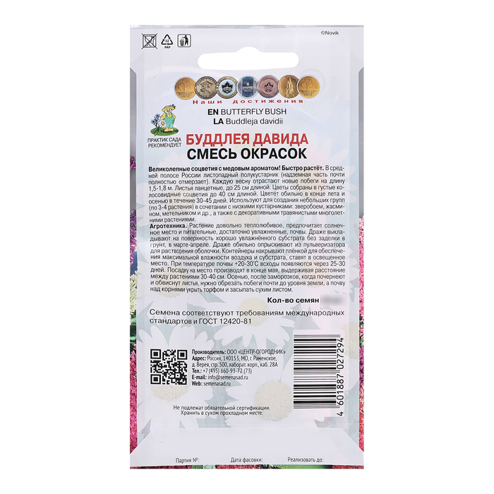 Великолепные соцветия с медовым ароматом! Быстро растет. В средней полосе России листопадный полукустарник (надземная часть почти полностью отмерзает). Каждую весну отрастают новые побеги на длину 1,5-1,8 м. Листья ланцетные, до 25 см длиной. Цветы собраны в густые колосовидные соцветия до 40 см длиной. Цветет обильно в конце лета и осенью в течение 30-45 дней. Используют для создания небольших групп (по 3-4 растения) в сочетании с низкими кустарниками: зверобоем, жасмином, метельником и др., а также с декоративными травянистыми многолетними растениями.Агротехника. Растение довольно теплолюбивое, предпочитает солнечное место и питательные, достаточно увлажнённые, почвы. Размножается семенами, которые высевают в марте - апреле в рассадные ящики (семена не присыпают). Посадочную ёмкость накрывают стеклом и ставят в освещённое место. При температуре почвы +20-30°С всходы появляются через 25-30 дней. Посадку на место производят в конце мая, выдерживая расстояние между растениями 30-40 см. Осенью, после заморозков, когда почернеют и обвиснут листья, нужно обрезать побеги почти до уровня земли, а почву под корнями укрыть торфом и засыпать сухим листом.Семена соответствуют требованиям международных стандартов и ГОСТу РФ 12420-81