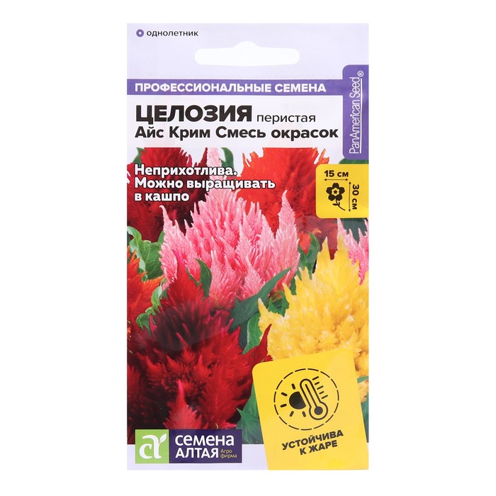 Очаровательное однолетнее карликовое растение высотой до 30 см. Серия отличается выравненностью растений, коротким периодом выращивания и широкой цветовой палитрой.Компактные растения увенчаныметельчатыми густомахровыми соцветиями красной, оранжевой, желтой и розовой окраски. Длина соцветий составляет половину высоты растения. Диаметр соцветий – 10-15 см. Выращивают целозию в групповых и одиночных посадках, а так же в горшках для украшения террас, балконов. Свето- и теплолюбивое растение. Наибольшей декоративности достигает на солнечных, защищенных от ветра участках с легкой плодородной почвой, не выносит кислых почв. Семена на рассаду высевают в марте-начале апреля. Ёмкость заполняют субстратом, состоящим из вермикулита и перегнойной земли (1:1). Семена равномерно (не густо) распределяют по поверхности почвосмеси, не заделывая, а лишь слегка вдавливая в нее. Для получения наилучшего результата посев рекомендуем проводить в торфяные таблетки (одно драже в таблетку). Посевы увлажняют из распылителя, накрывают стеклом или пленкой и помещают на хорошо освещенный теплый (+23-25оС) подоконник, защитив от прямых солнечных лучей. Посевы нужно ежедневно проветривать и следить за влажностью почвы. Всходы появляютсячерез 6-8 дней, их продолжают выращивать при температуре +17-20оС. В условиях короткого светового дня растениям требуется дополнительная подсветка в течение 4-6 часов. За период выращивания производят 2 пикировки: одну после появления у сеянцев нескольких листочков, вторую – в середине мая в горшки диаметром 7 см. В открытый грунт рассаду высаживают в конце мая – начале июня, когда минует угроза заморозков. Посадочный интервал – 15-20 см. Внимание! Семена дражированные - оболочку драже не разрушать!