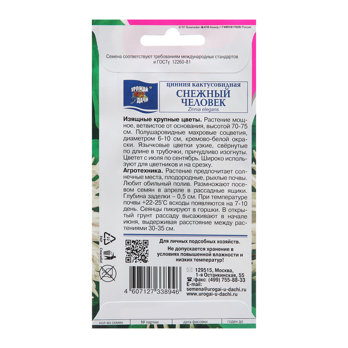 Семена цветов Цинния "Снежный человек", 0,2 г