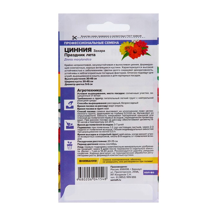 Супервыносливая серия карликовых цинний нового поколения для любительского и профессионального озеленения, не требующая специального ухода! Кустики компактные, высотой 30-45 см, хорошо ветвятся. Цветки очень яркие и праздничные, различной окраски, диаметром 5-6 см. Отличительными признаками сортосерии являются: насыщенные и уникальные окраски цветков, длительный период цветения, повышенная толерантность к грибковым заболеваниям. Широко используется для оформления цветников, посадок в контейнеры и балконные ящики, для выращивания в вазонах и открытом грунте. Светолюбивое растение, отличается хорошей засухоустойчивостью. Предпочитает солнечные участки на рыхлых плодородных, хорошо дренированных почвах. Посевы на рассаду проводят в марте-апреле. Всходы появляются через 6-10 дней при температуре +21-23°С. Растения нормально развиваются при температуре +16-18°С. Высадка рассады в грунт в конце мая-июне, когда минует угроза заморозков. Посадочное расстояние – 25-30 см. Возможен посев семян в открытый грунт в мае.