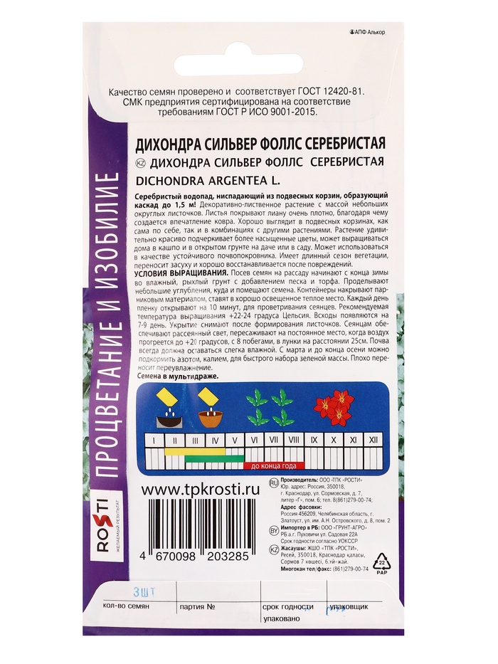 Семена цветов Дихондра Сильвер Фоллс (серебристая) Агроуспех 3шт (250)