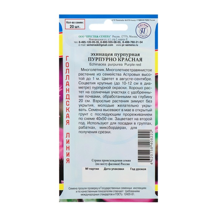 Многолетнее растение из семейства Астровых Эхинацея пурпурно-красная формирует травянистый куст высотой до 100 см с крупными цветами 10-12 см в диаметре. Цветет в августе-сентябре на второй год после посадки.