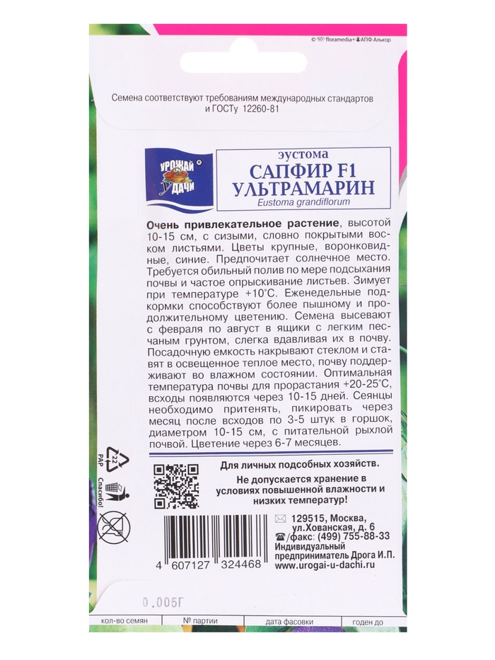 Семена цветов Эустома сапфир Ультрамарин 0,005 г. ампл.