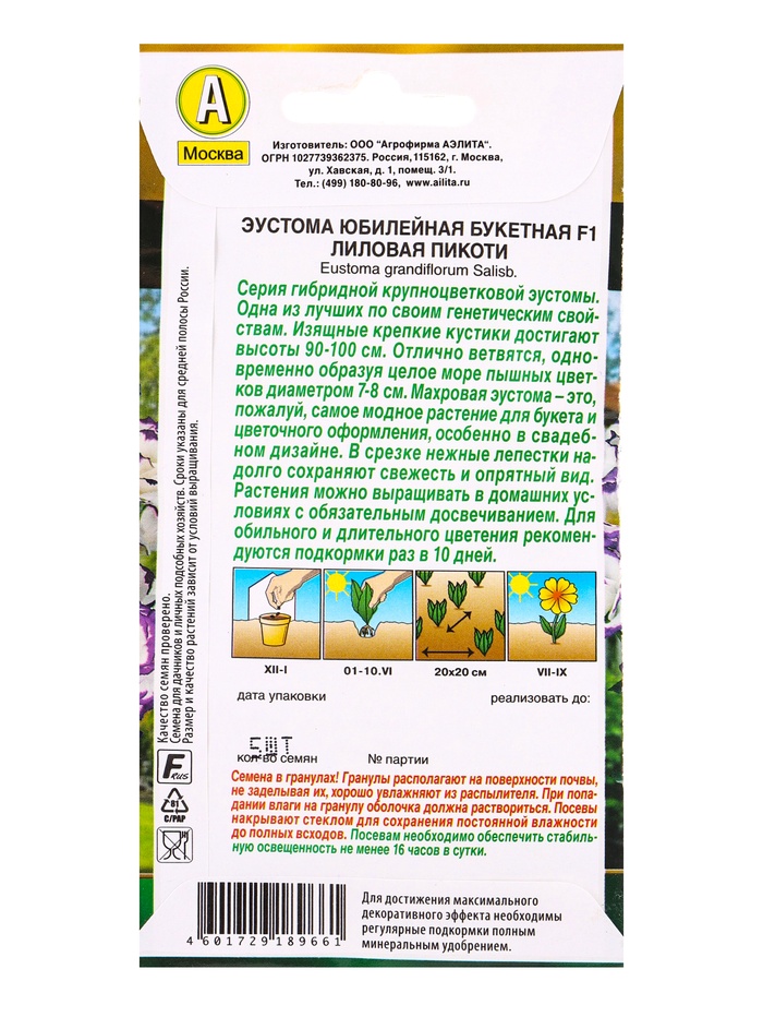 Семена цветов Эустома Юбилейная букетная F1 махровая лиловая пикоти (драже) , Ц/П,5 шт.