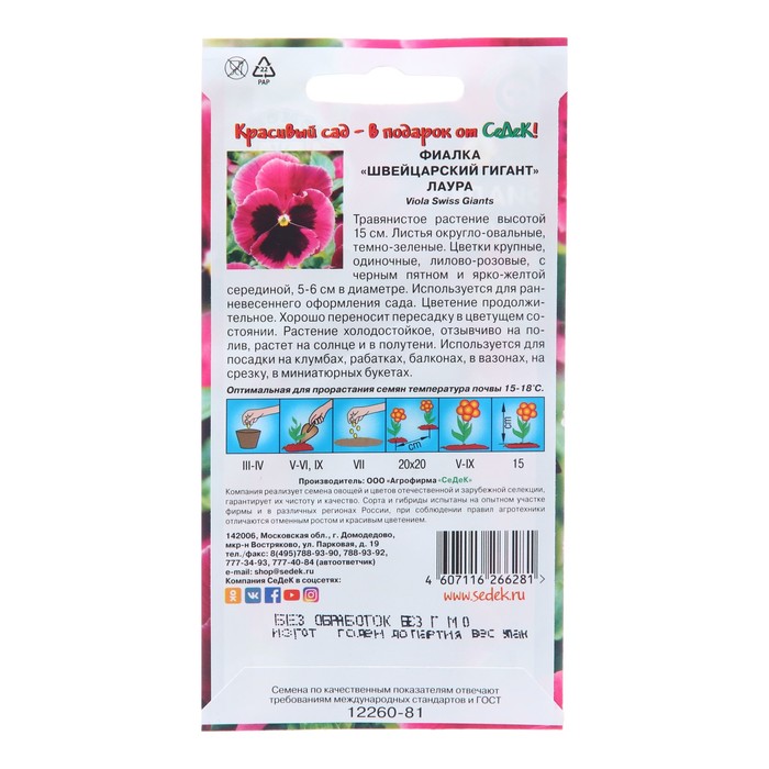 Травянистое растение, высотой 15 см. Листья округло-овальные, темно-зеленые. Цветки крупные, одиночные, лилово-розовые с черным пятном и ярко-желтой серединой, 5-6см в диаметре. Используется для ранневесеннего оформления сада. Цветение продолжительное. Хорошо переносит пересадку в цветущем состоянии. Растение холодостойкое, отзывчиво на полив, растет на солнце и в полутени. Используется для посадки на клумбах, рабатках, балконах, в вазонах, на срезку в миниатюрных букетах.