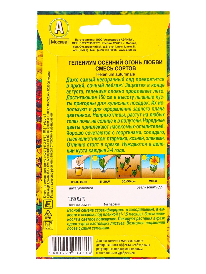 Семена цветов Гелениум Огонь любви, смесь сортов Мн, Ц/П,30 шт.