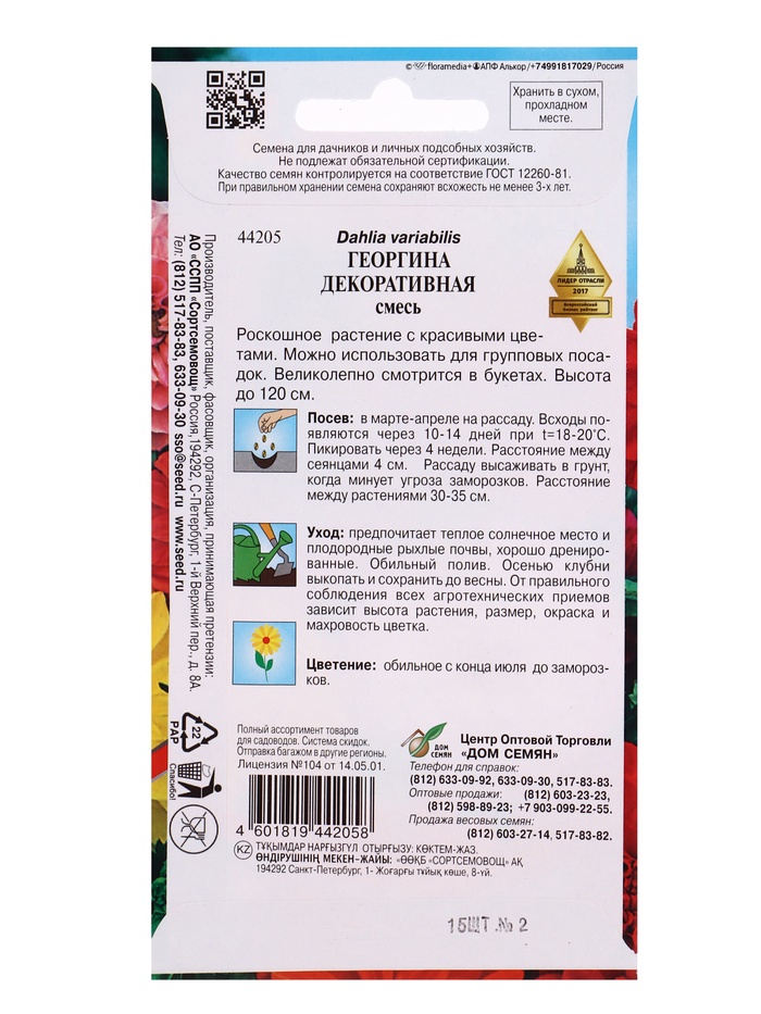 Семена цветов Георгина Декоративная 15 шт